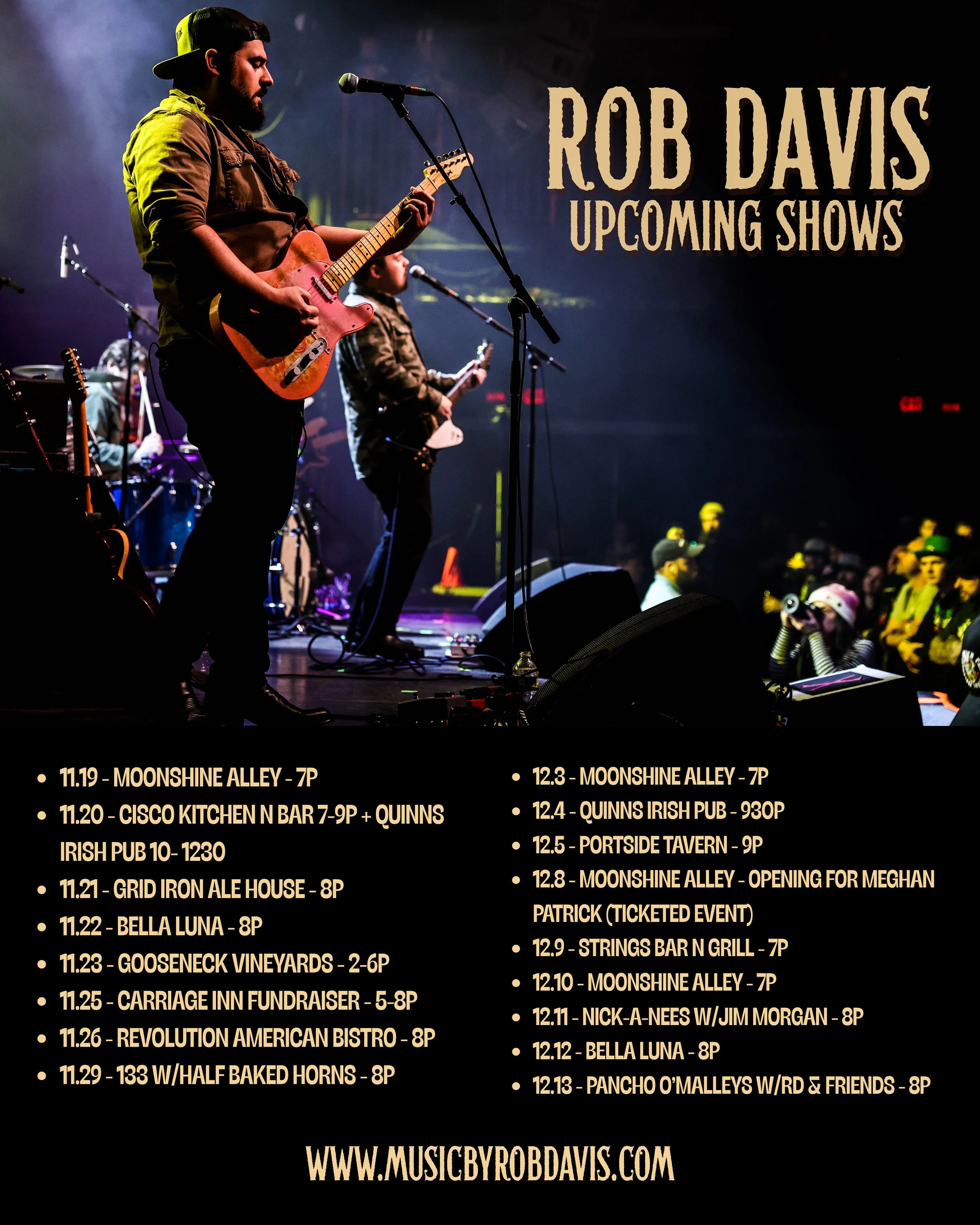 Rob is no stranger to the Rhode Island Music scene. Since the age of 15, Rob has been performing in and around the Southern New England area, most notably, an almost decade-long summer residency on Block Island, a small island off the Rhode Island Coast. From solo acoustic performances, leading his own project the “Rob Davis Band”, or performing/recording with some of the areas leading acts as a hired gun, Rob has earned his title as of one the hardest working musicians in the Ocean State.